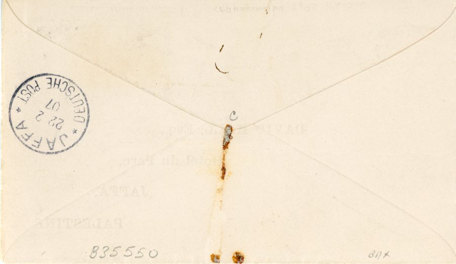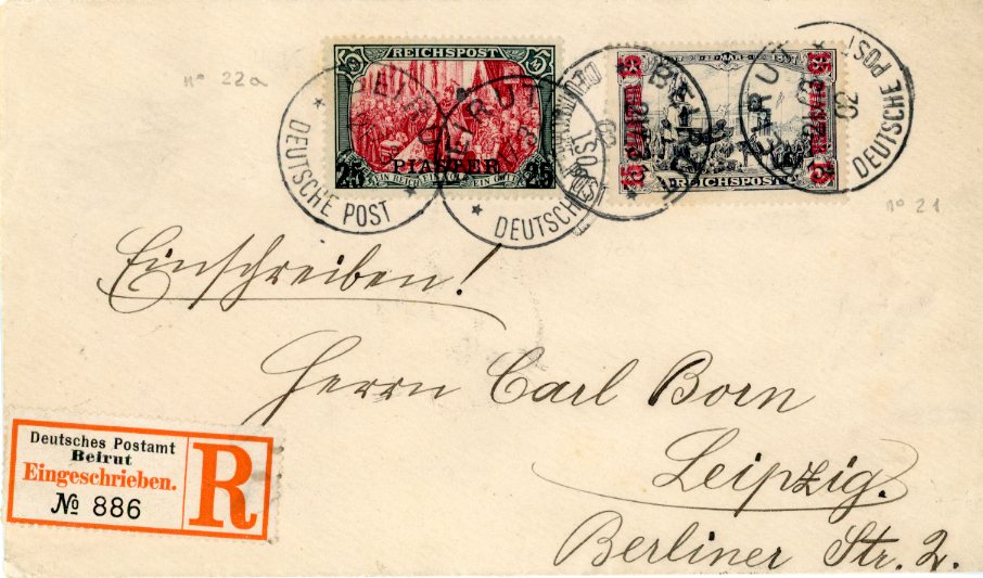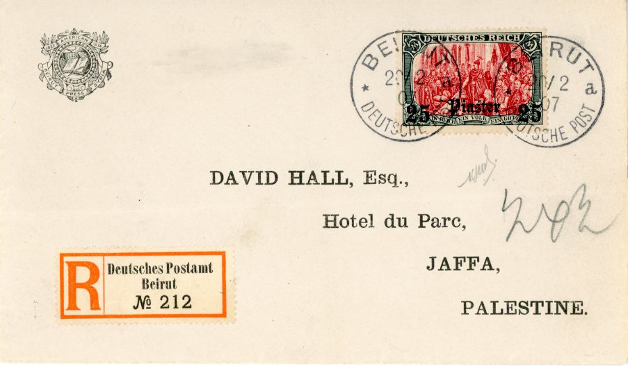 1907 German Levant Beirut Registered 25pi on 5m to Jaffa