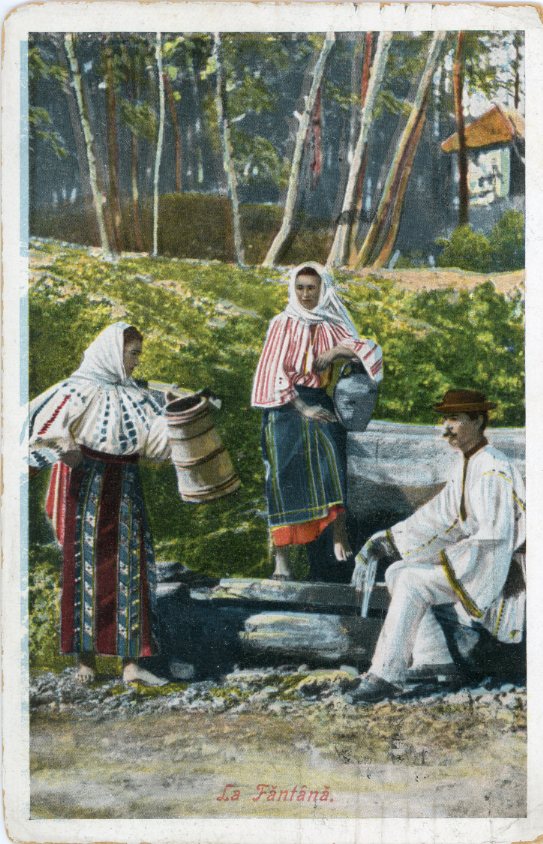 Romania Villagers at Fountain Folk Postcard 1911 to Istanbul