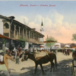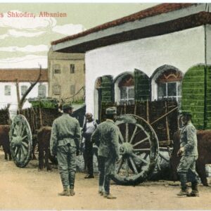 Albania Shkoder Oxcarts and Soldiers ed Shoqujia Tregtare