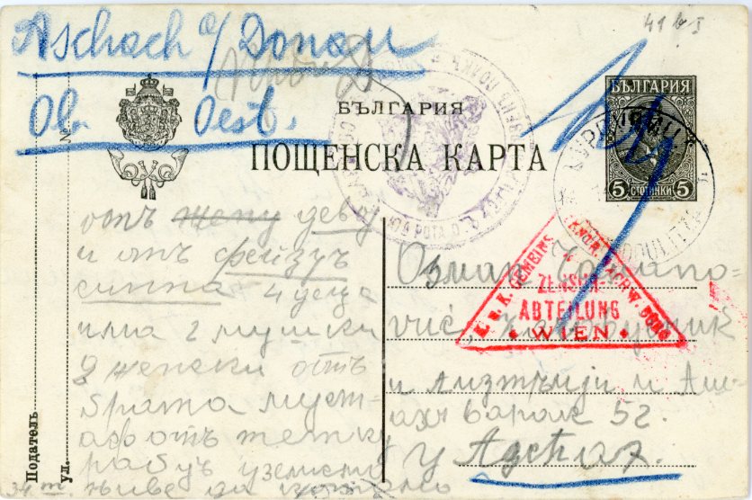 1917 Bulgaria occ Macedonia Tetovo Censored Formular