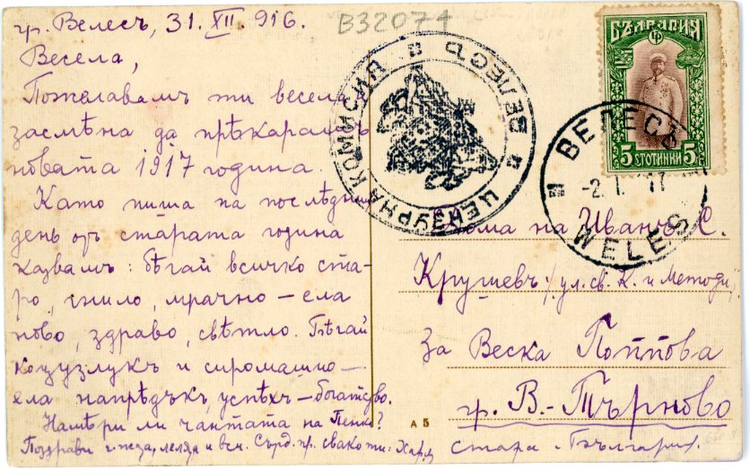 1917 Bulgaria occ Macedonia Veles Postcard to Veliko Tarnovo