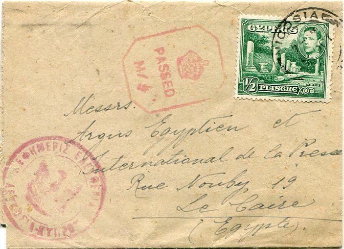 1942 Cyprus Nicosia Newspaper Wrapper Passed M/4 to Egypt