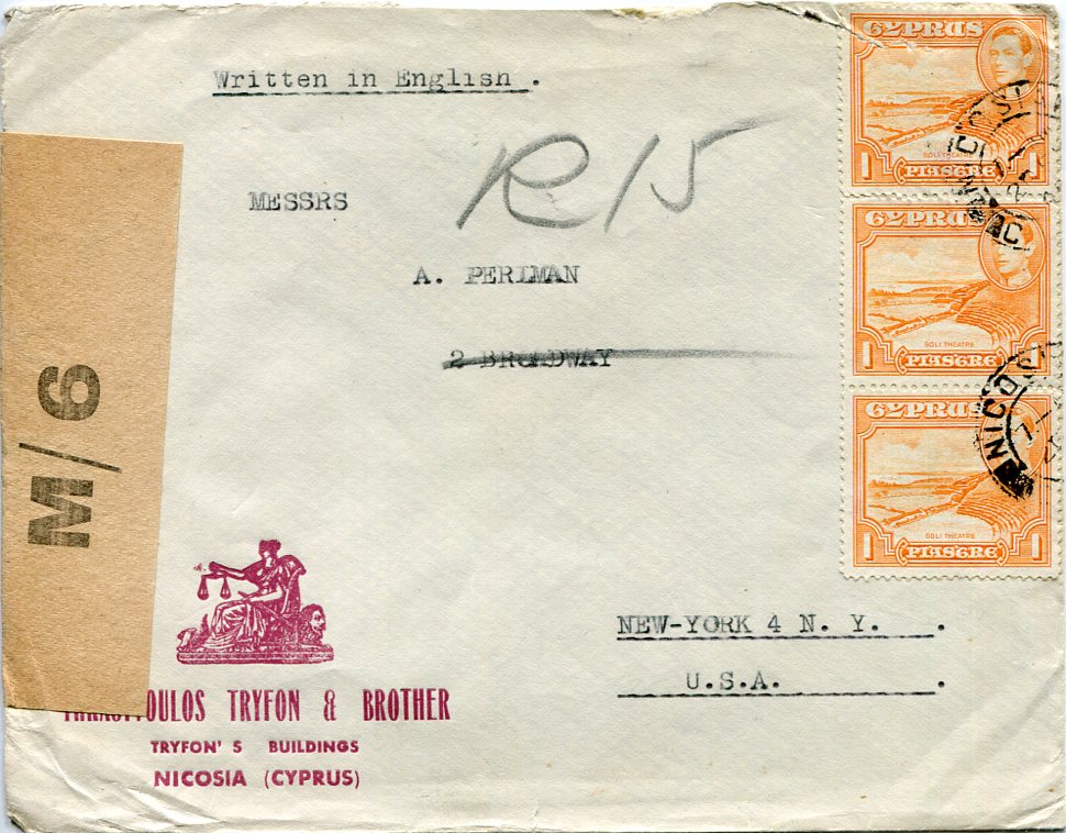 1940 Cyprus Triple Censored to Indonesia via Egypt