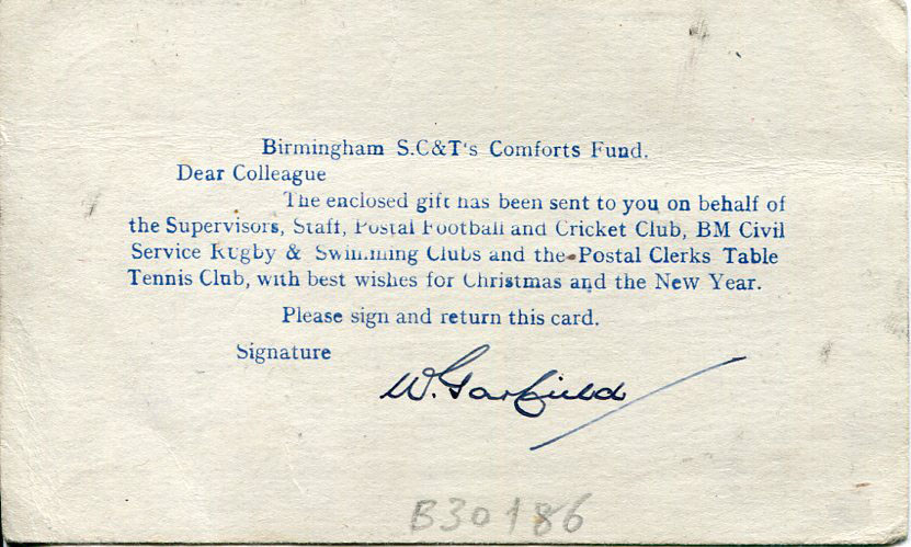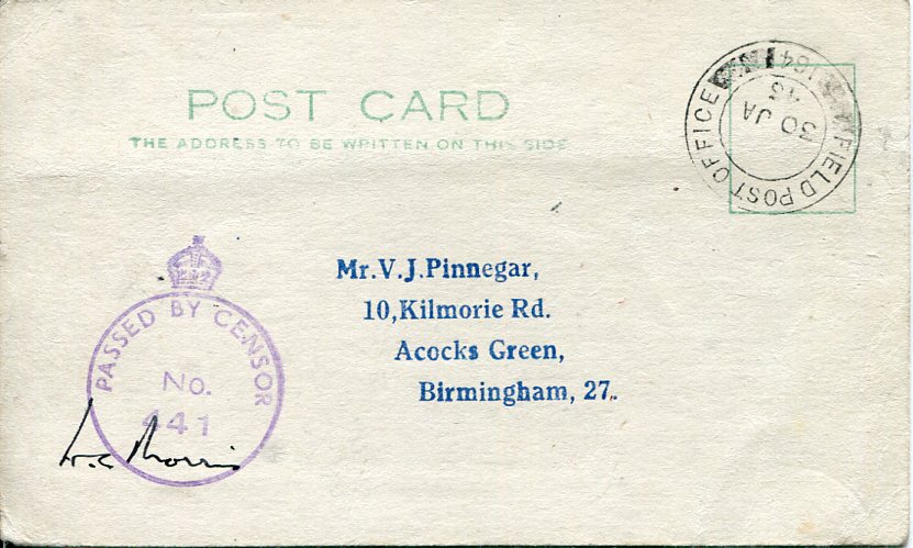 1943 Cyprus FPO 164 Censored Birmingham Comforts Fund