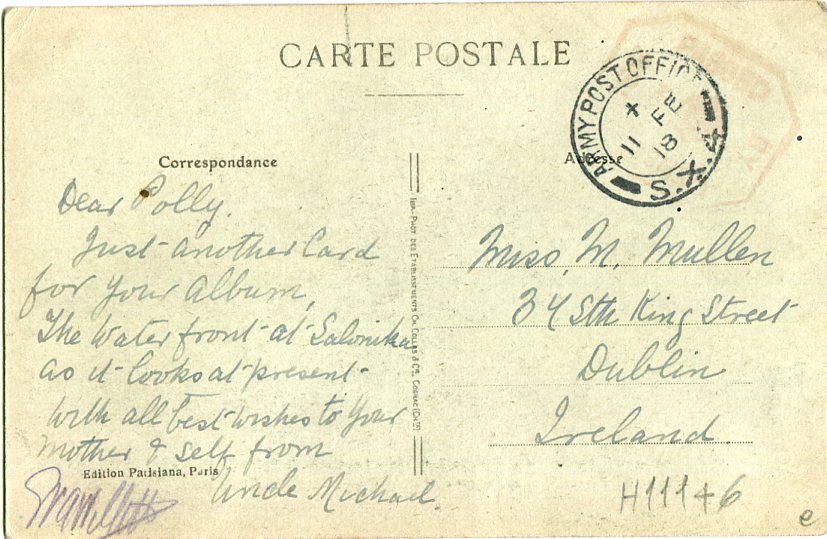 Greece Salonica Fire 1918 APO SX4 to Ireland