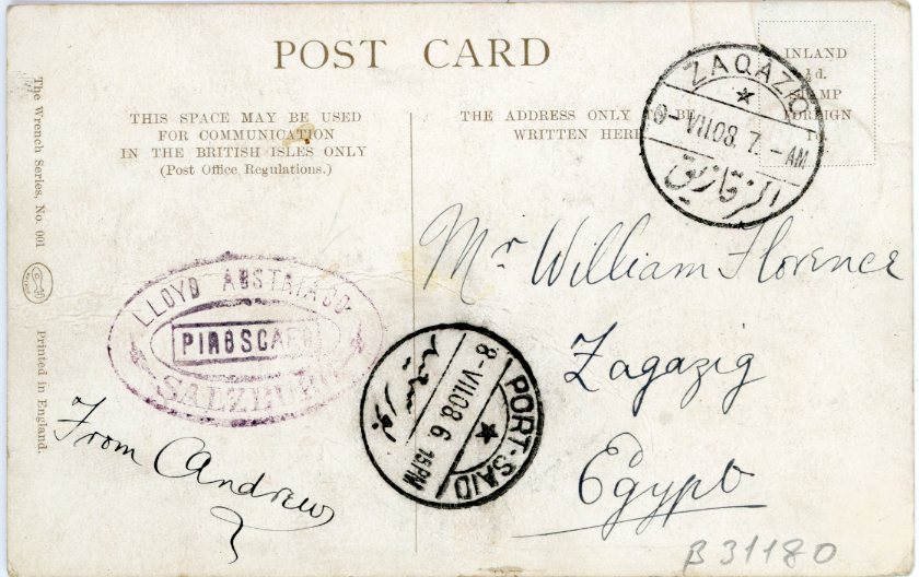 1908 British Levant Beirut Lloyd Austriaco SALZBURG to Zagazig