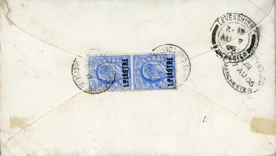 1906 British Levant Istanbul Registered to Levenshulme