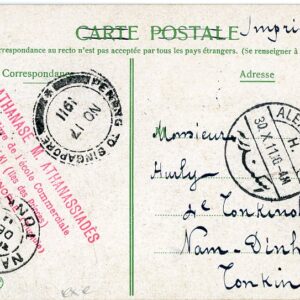 1911 Austria Levant Halki to Nam Dinh Vietnam via Penang Singapore