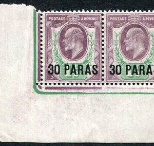 1909 British Levant 30pa on 1 1/2d Pair