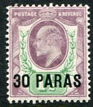 1909 British Levant 30pa on 1 1/2d MLH