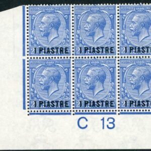 1913 British Levant 1pi on 2 1/2d C13 Plate Block of 6 Sg 36 **