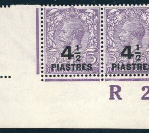 1921 British Levant 4 1/2pi on 3d plate R21 pair Sg 44a **