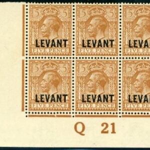 1921 British Levant 5d plate Q21 Block of 6 Sg L21 **