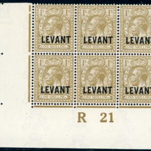 1921 British Levant 1s plate R21 Block of 6 Sg L23 ** / *