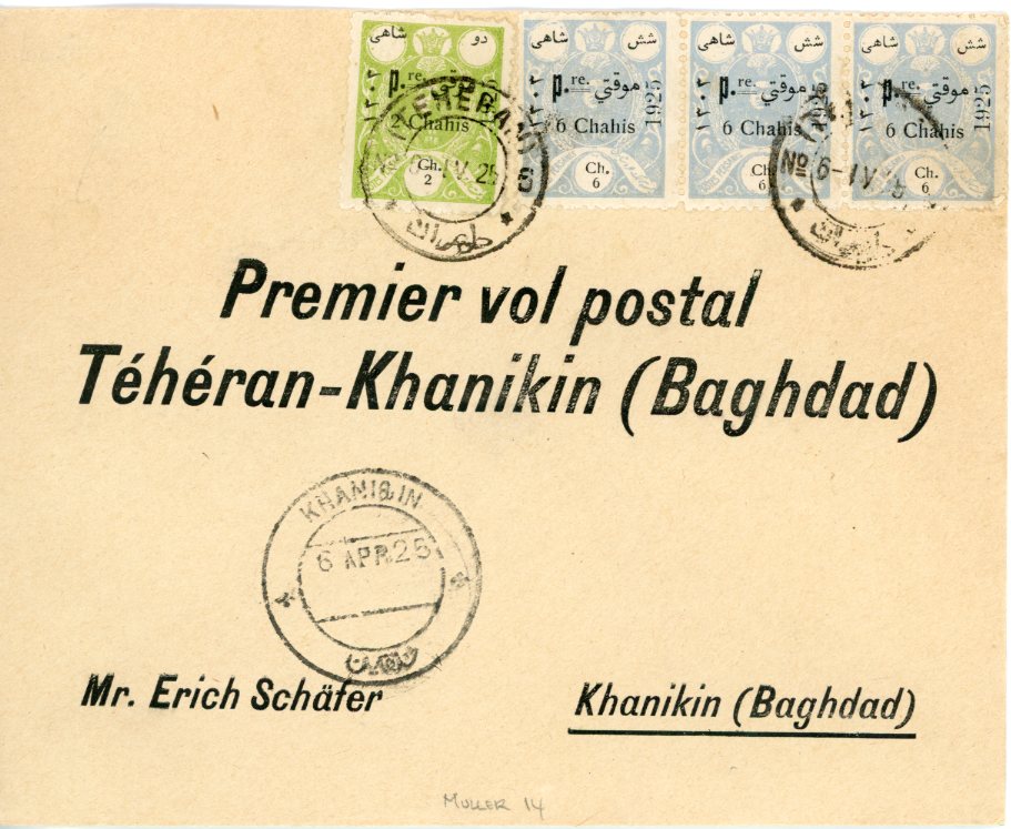 1925 Persia Teheran Khanaqin Iraq First Flight Cover