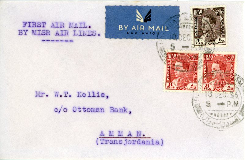 1936 Iraq First Flight Airmail by Egypt Airlines to Amman