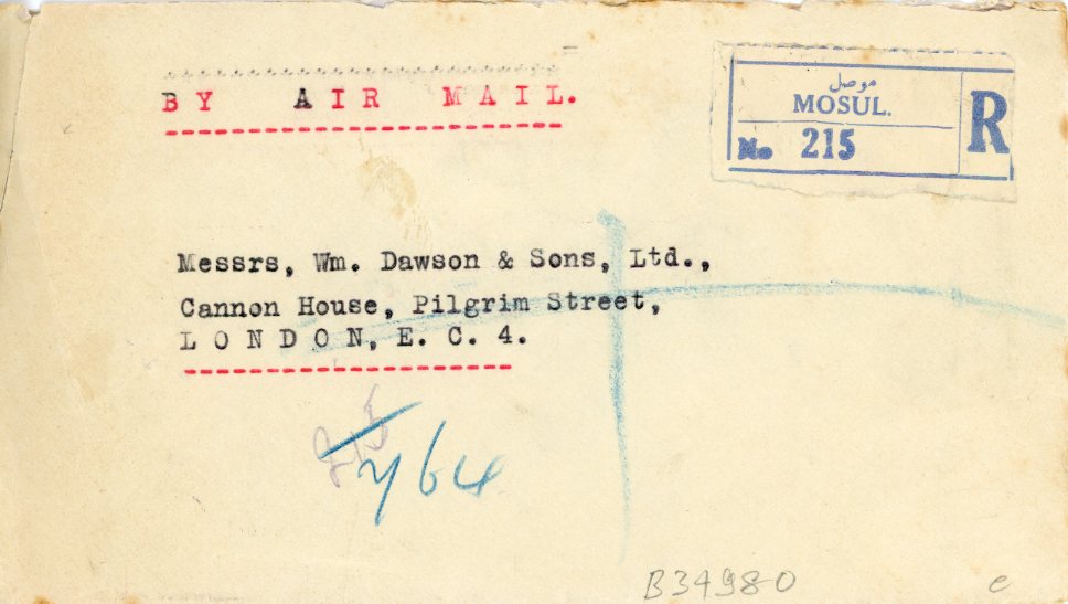1931 Iraq Mosul Pharmacy Cover Registered Airmail