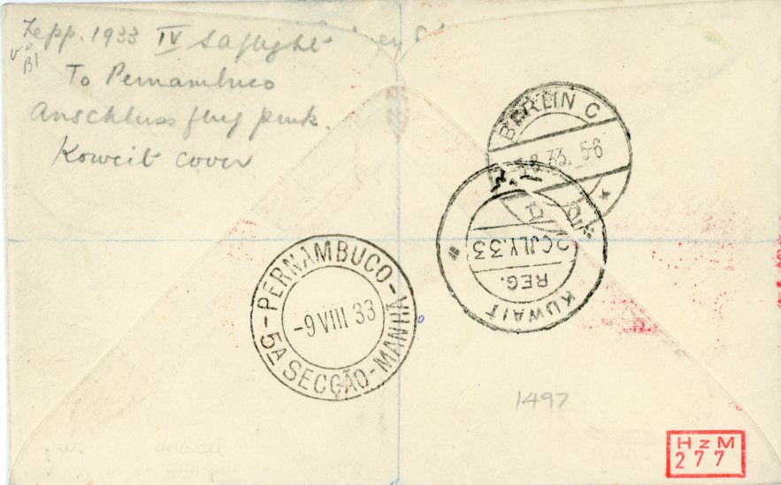 1933 Kuwait Zeppelin 4th South America Flight to Brazil