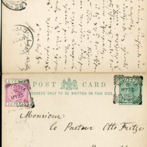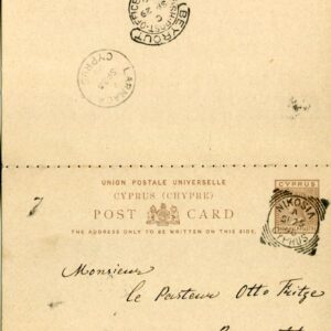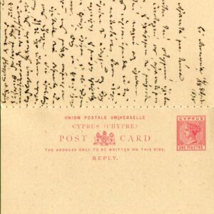 1896 Cyprus Nicosia 1 1/2pi Reply Card to Beirut