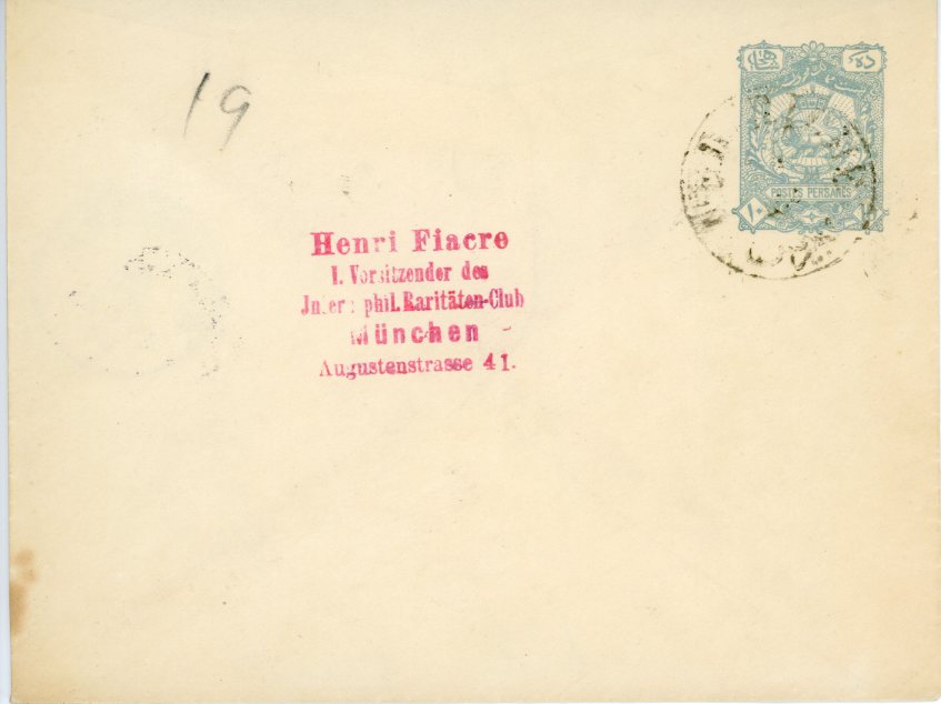 1896 Persia Tabriz 5ch 150mm Postal Envelope