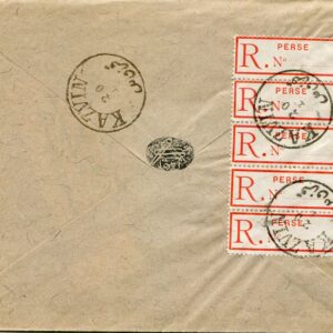 1903 Persia Registration Label strip Hamadan to Teheran
