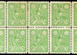 1910 Persia Ahmed Shah Coronation Saatdjian 6ch Inverted Centre