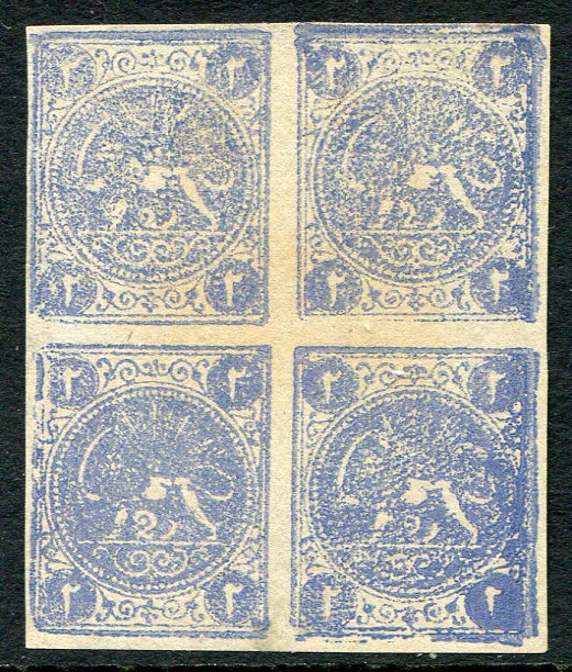 1876 Persia Lion 2sh violet blue Block of 4 (*)