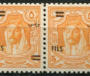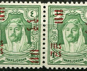 1952 Jordan 20f on 20m Pair Overprint Inverted NHM