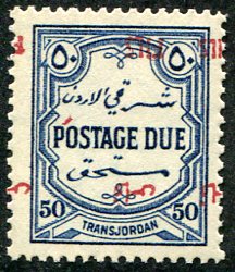 1952 Jordan 50f on 50m Postage Due Opt. Inverted