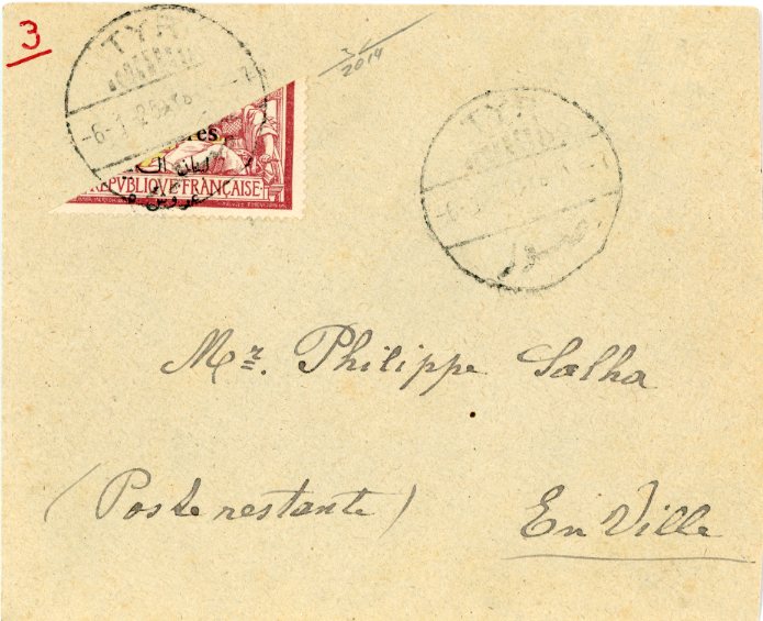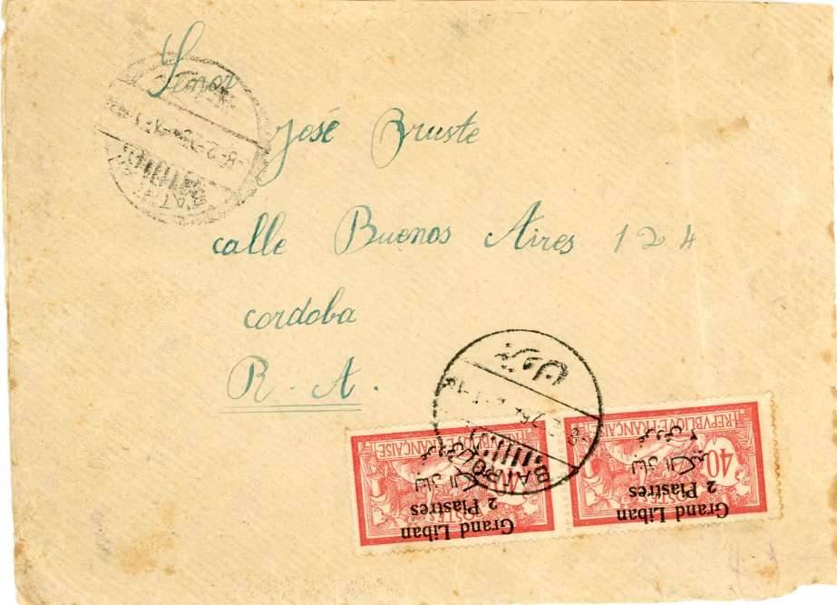 1927 Lebanon Registered Bank 15p surcharge 25p at Foot