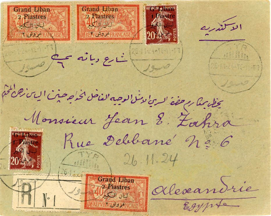 1924 Lebanon Registered Airmail via Bagdad to Egypt