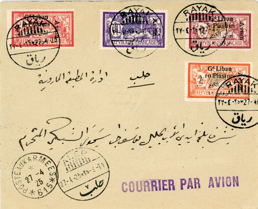 1924 Lebanon Riyaq Airmail Set Cover to SP615 Aleppo