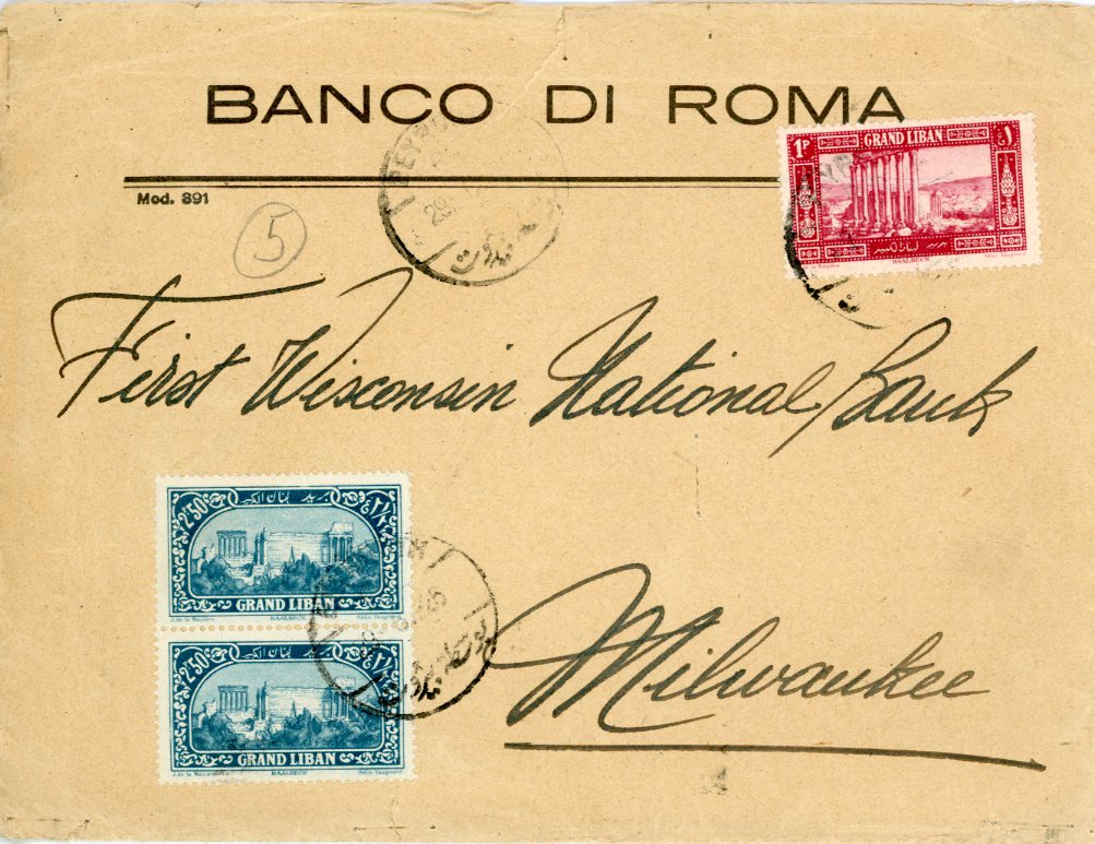 1926 Lebanon Beirut Bank Cover to Milwaukee USA