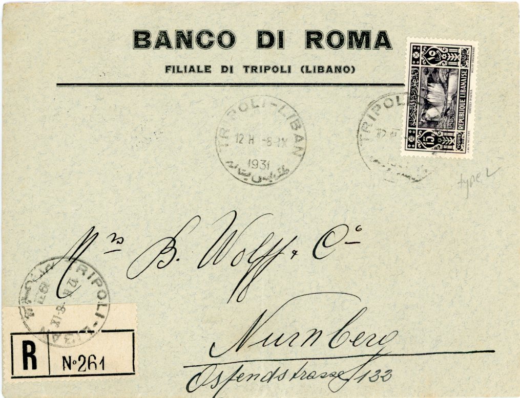 1931 Lebanon Tripoli Registered Bank Cover to Nurnberg