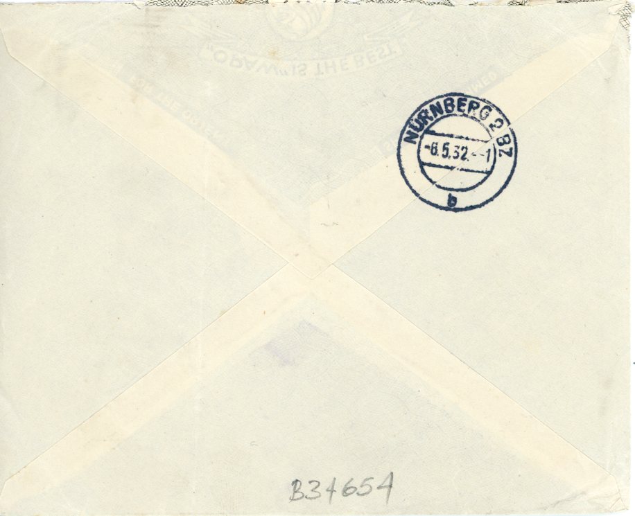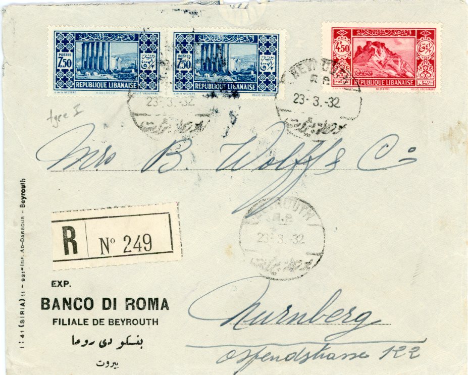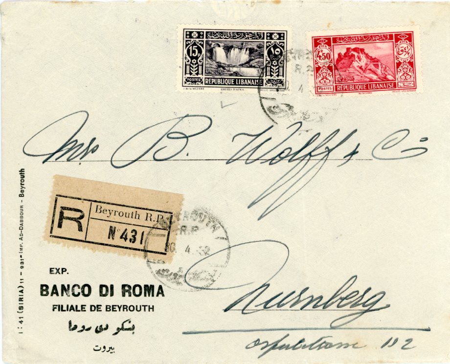 1932 Lebanon Beirut Registered Bank Cover to Nurnberg