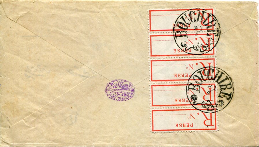 1902 Persia Bushire Registration Label Strip ex Lucas