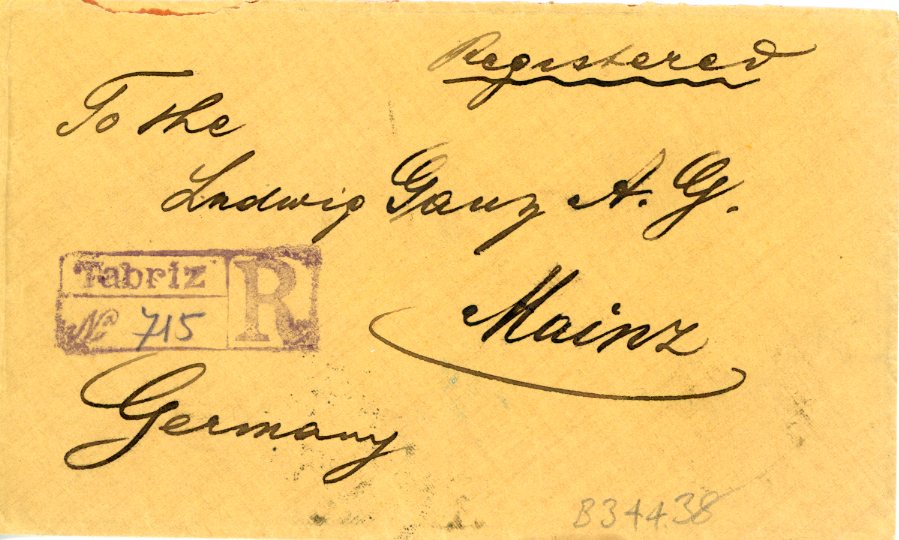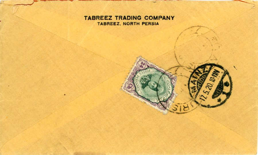 1920 Persia Tabriz 24ch Ahmed Mirza Registered to Mainz