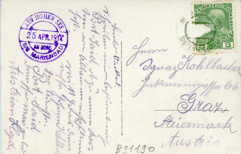 1914 Egypt Lloyd Austriaco ss MARIENBAD to Graz