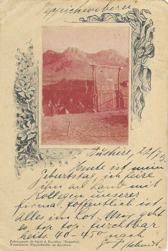 1913 Persia Carpet Making 6ch on 5ch Postcard to Germany