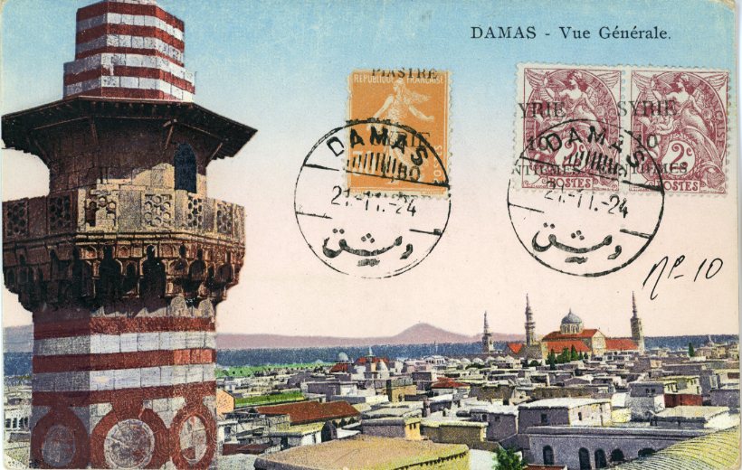 1924 Syria Damas Postcard 10c and 1.50p Errors