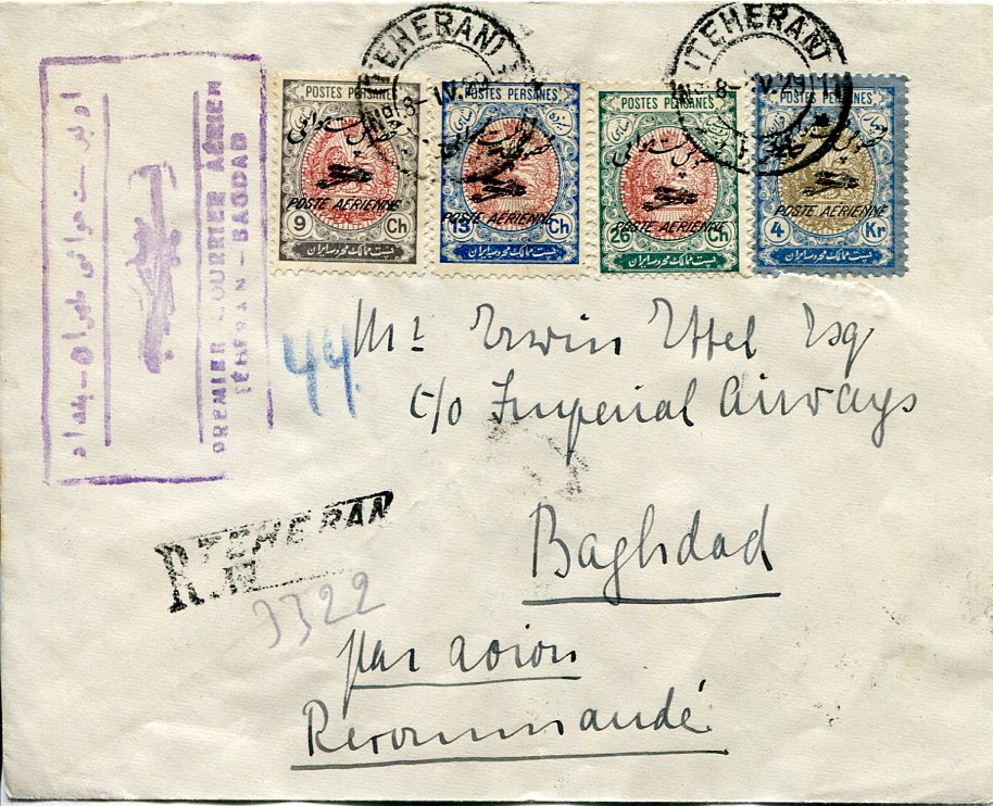 1929 Persia Teheran Baghdad Registered 1st Flight 4kr