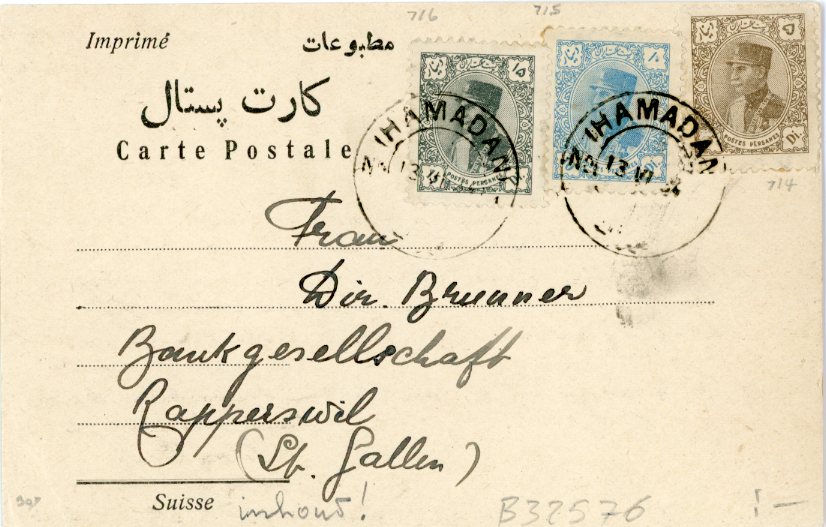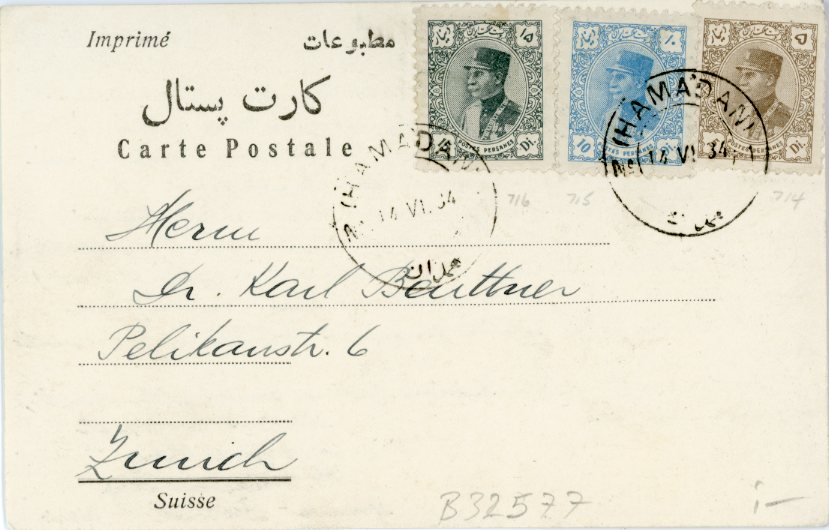 1934 Persia Hamadan Formular Card to Zurich