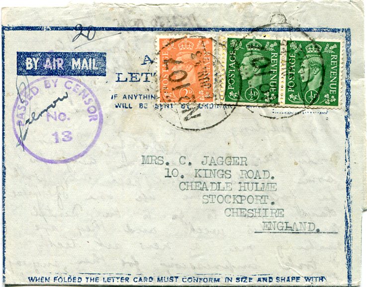 1943 Egypt FPO 160 RAF Censor to South Africa