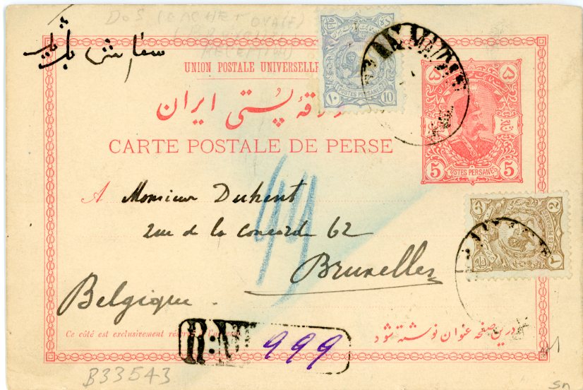 1900 Persia 5ch Picture Stationery Registered to Belgium ed Fischer