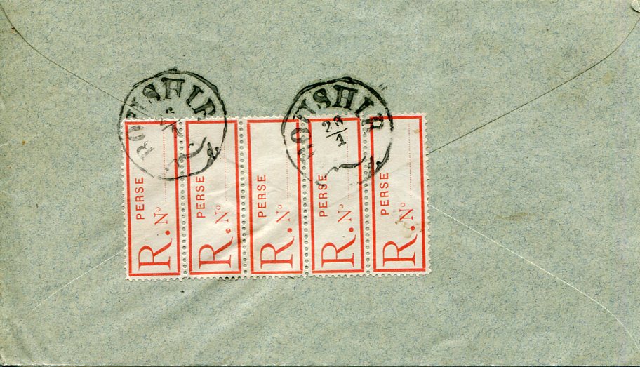 1901 Persia Bushire Registration Label Strip ex Lucas