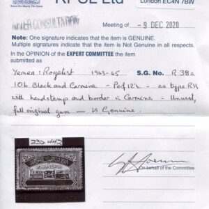 1965 Yemen Royalist 10b Consular with Certificate **