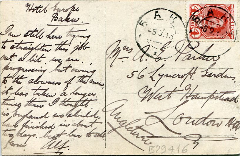 1920 Azerbaijan Baku Postcard to Petrograd