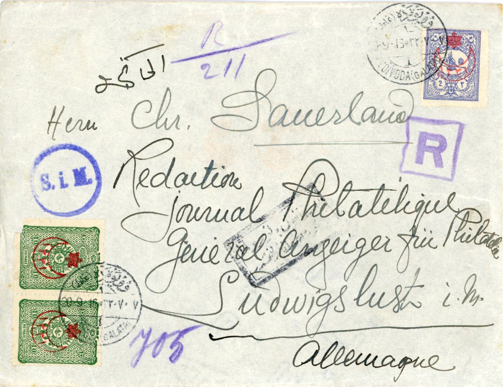 1916 Turkey Galata Registered Censored to Philatelic Journal Germany