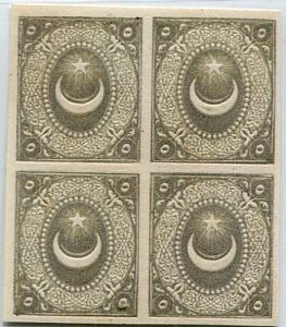 1865 Turkey Dulos 25pi Colour Proof Imperf Block 4 (*)