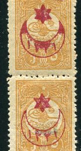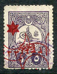 1915 Turkey Provisional 5pi DoubIe one Inverted Used